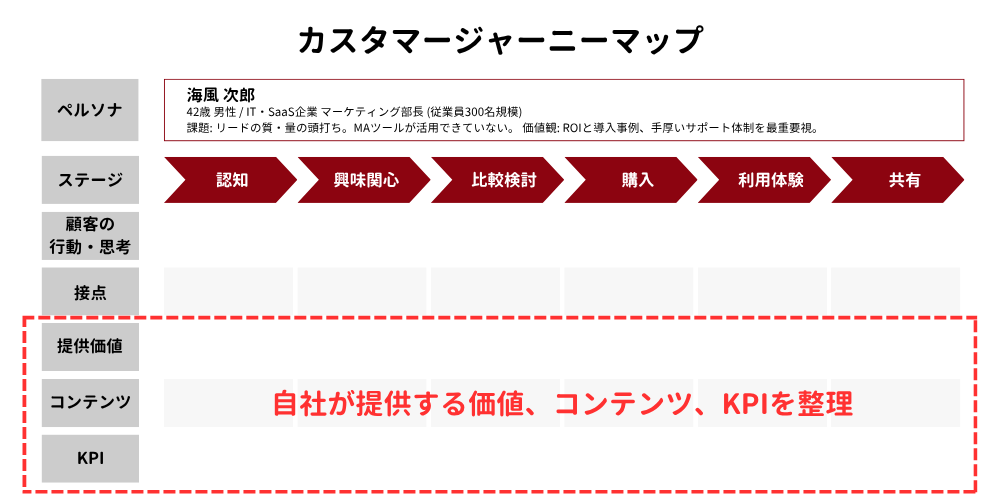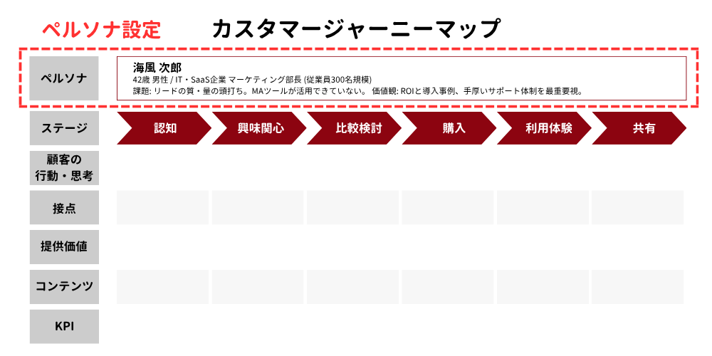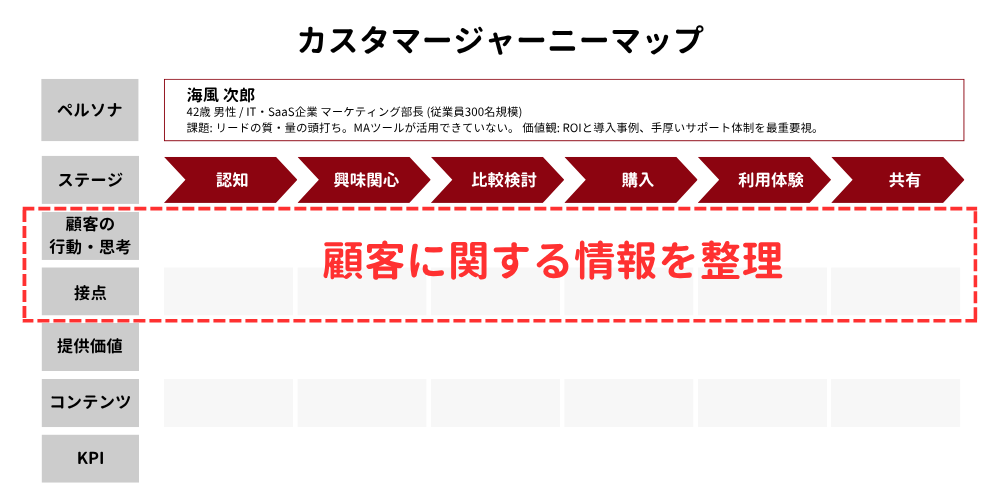 ここからは、実際にカスタマージャーニーマップを作成する具体的な手順について解説します。