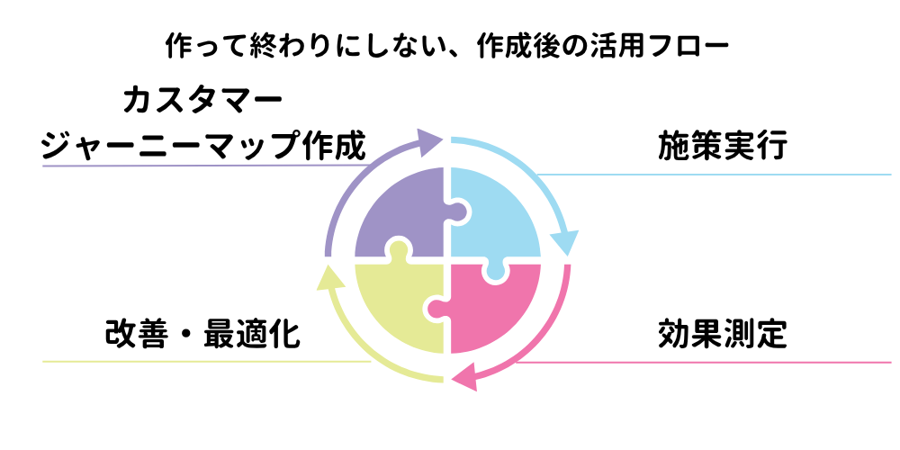 測定結果を基にマップと施策の改善を行います。顧客行動の変化、市場環境の変化に応じて、継続的にアップデートしていきます。